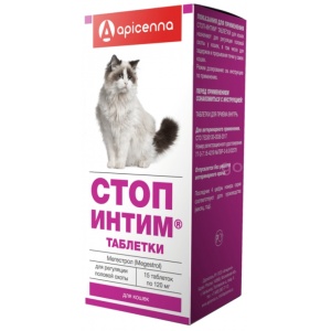 Стоп-Интим таблетки для кошек по степени воздействия на организм относятся к малоопасным веществам (4 класс опасности по ГОСТ 12.1.007-76), в рекомендуемых дозах не оказывают гепатотоксического, мутагенного и сенсибилизирующего действия.